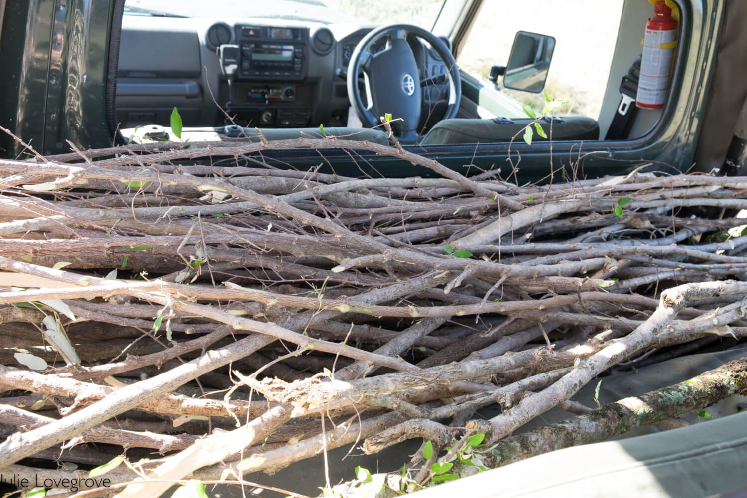Another task was to mark out new routes by cutting back bushes with machetes and laying branches in lines through areas that are currently impassable in a vehicle. This is so that tracks can be followed and vehicles don’t just drive anywhere and everywhere which would destroy all the land. Having said that, if there is an interesting sighting of an animal, we can go ‘off road’ in order to get closer to it. Some of the volunteers love hacking at branches with machetes!