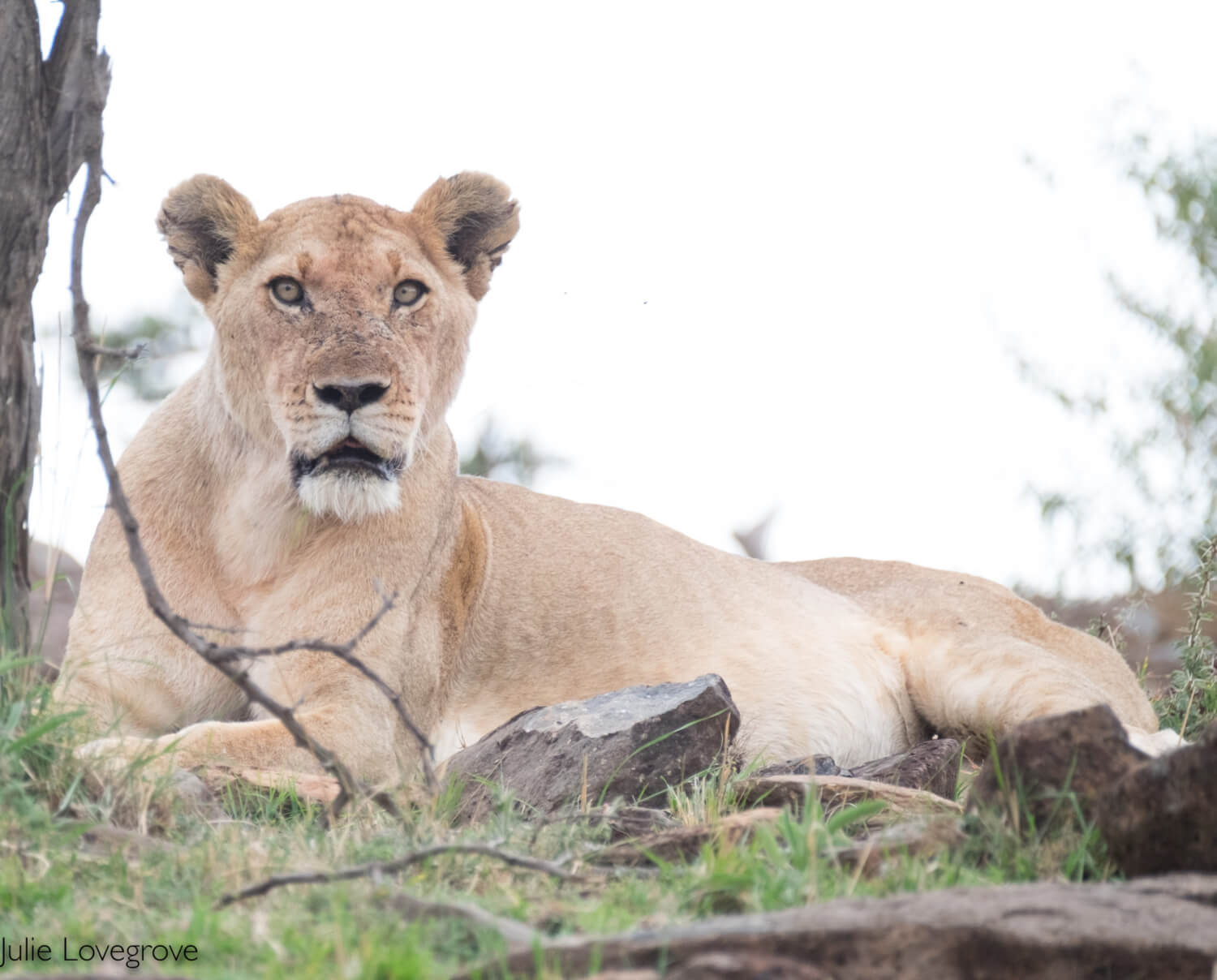This lioness will be easily recognisable in the future, as she’d obviously been in a very recent fight. We were assured that she would heal up, but this bottom lip is never going to knit together. We were astounded at how unfazed she was by this as it looks like she should be in agony.