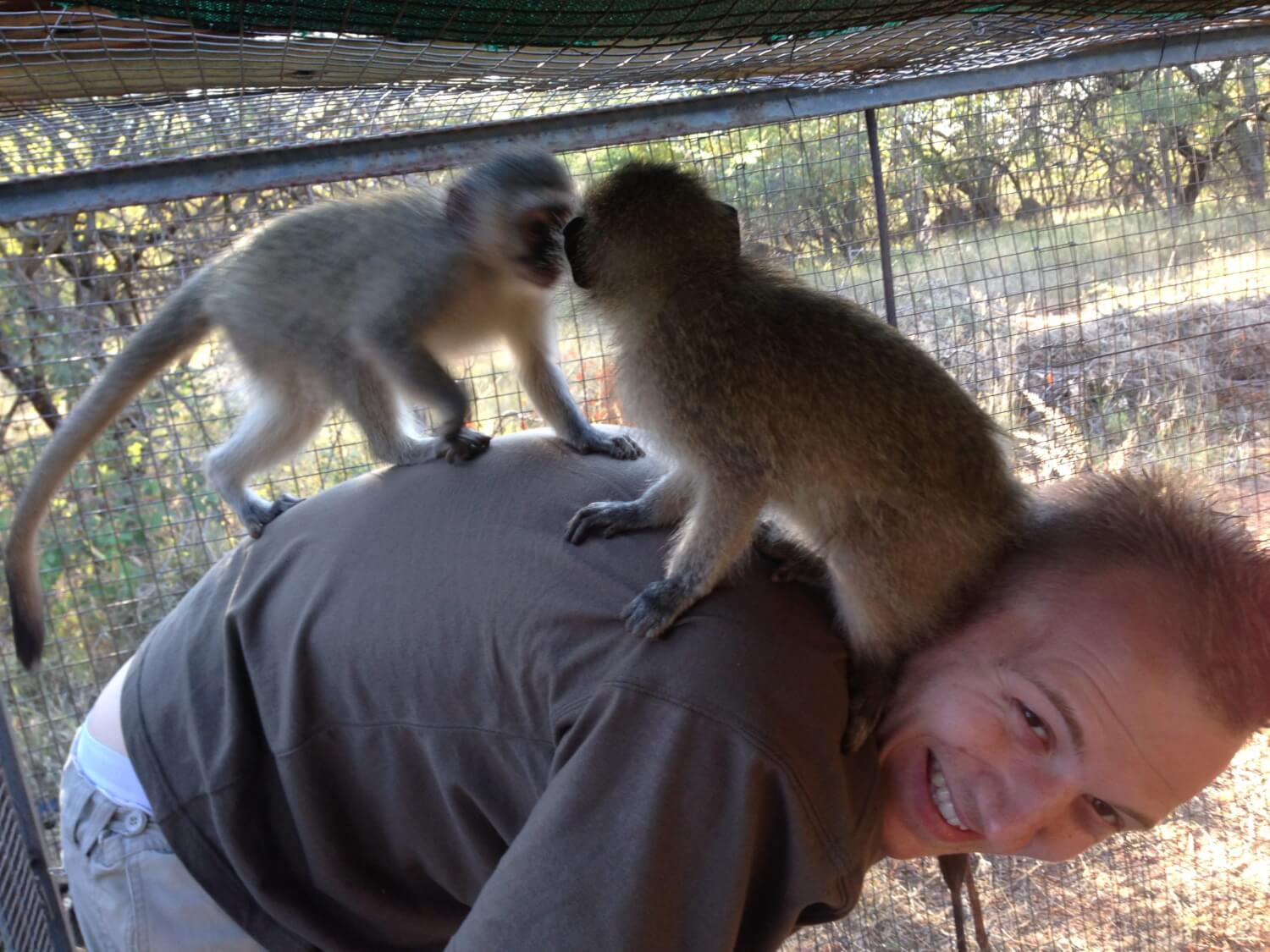 Visiting a monkey sanctuary and walking over an extremely wobbly bridge:
