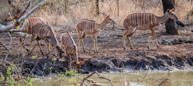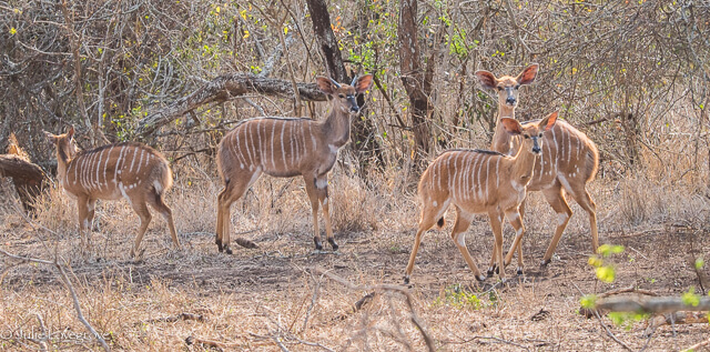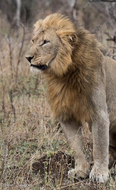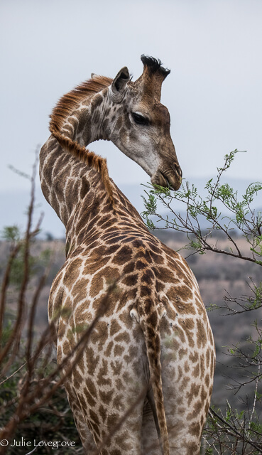 My cabin is right on the boundary fence, which is a 3’ high electric fence. The impala and Nyala often jump over it, and graze right outside my decking. I’ve seen giraffe just the other side of the fence, and have heard lions roaring and hyenas whooping as I lie in bed at night – they sound as if they are right outside, and the hyenas may be very close, but a lion’s roar can travel as far as five miles!