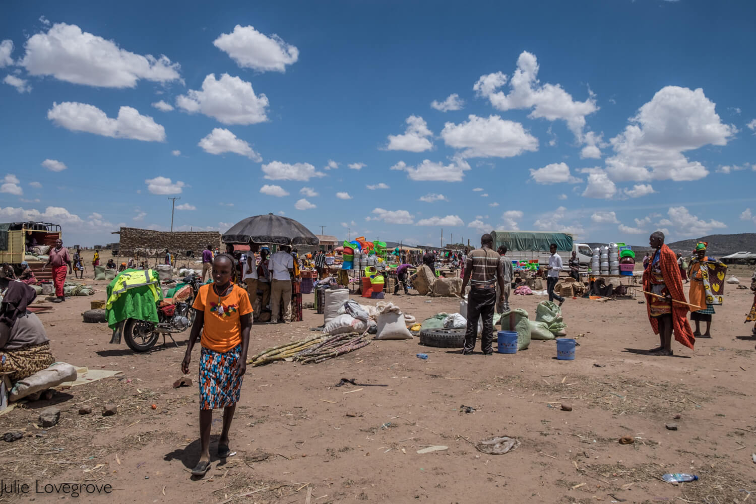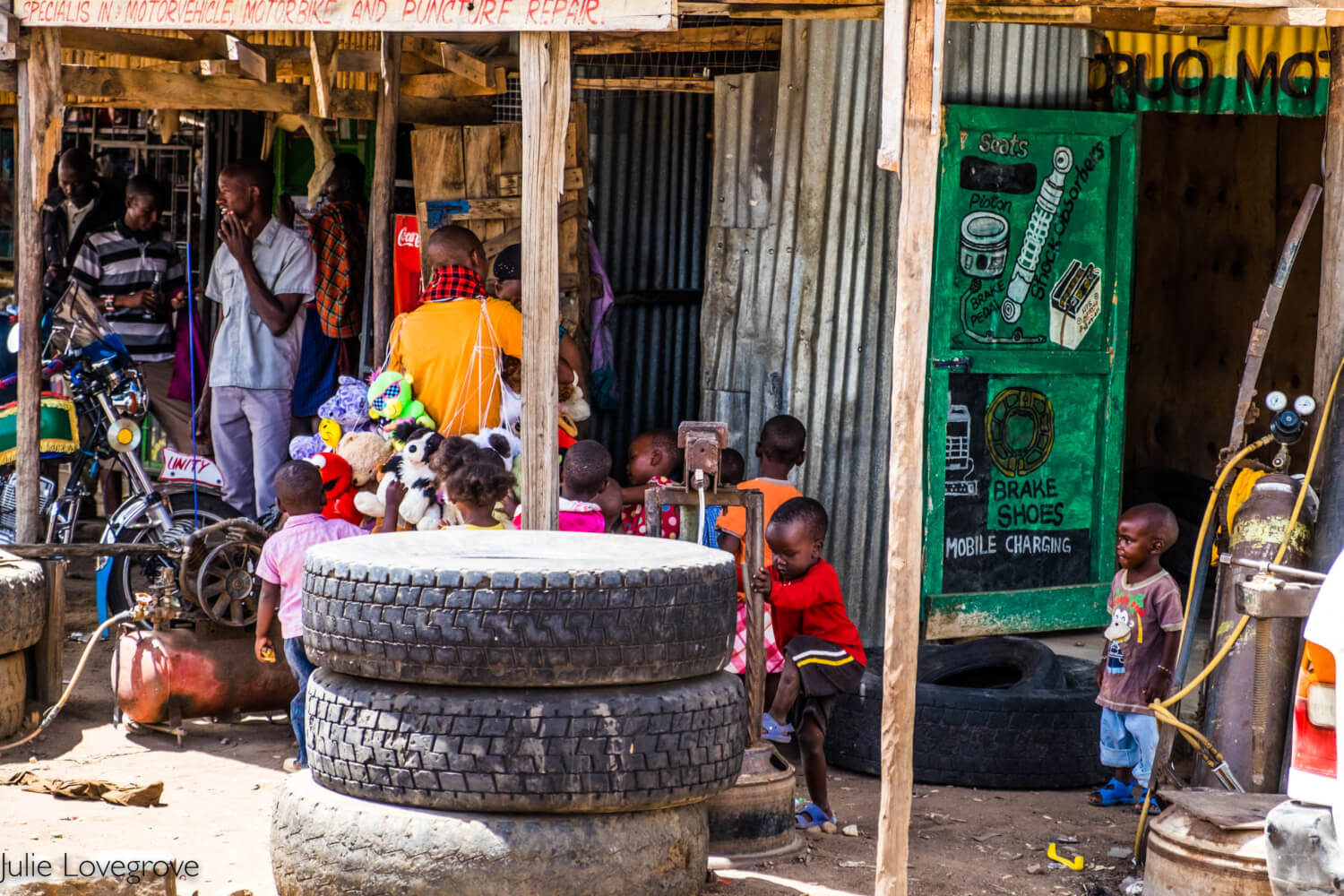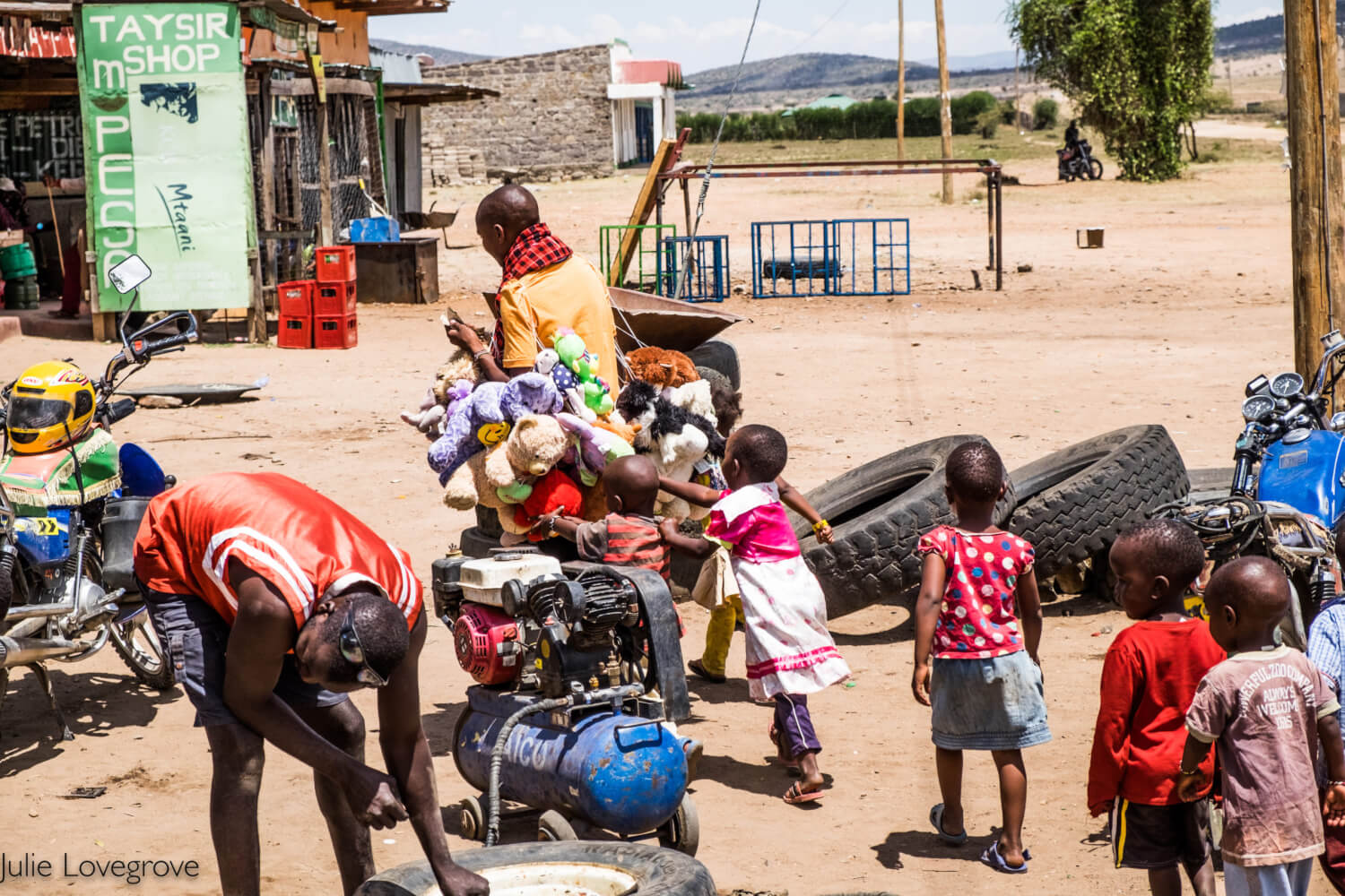 I love this – a Masai dressed in traditional clothes with his knife in his belt, driving a motorbike. Check out the butchery in the background too 🙂